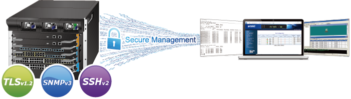 • Para el software de monitorización y gestión basado en estándares, ofrece conexión SNMPv3 que encripta el contenido del paquete en cada sesión para una gestión remota segura.
