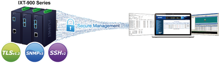 El IXT-900-2X1T está equipado con funciones de ciberseguridad mejoradas para defenderse de las amenazas y los ataques cibernéticos. Admite los protocolos SSHv2, TLSv1.2 y SNMPv3 para brindar una sólida protección contra amenazas avanzadas. Para transmitir de forma segura datos críticos a colegas o clientes a través de cableado de fibra óptica, la función de ciberseguridad del IXT-900-2X1T protege la gestión de la red y mejora la seguridad de las redes de misión crítica sin incurrir en ningún costo o esfuerzo de implementación adicional.