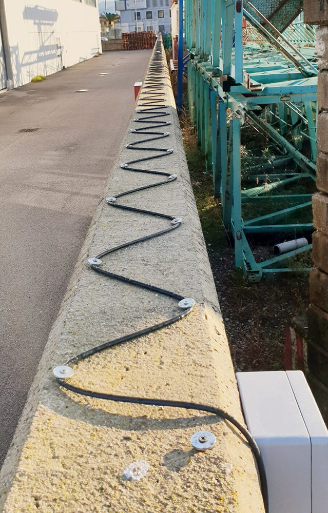 Gracias a la simple calibración de los interruptores giratorios a bordo, el cable detecta la escalada y los intentos de rotura cuando se despliega en cercas rígidas o de malla o se instala en paredes. Blackfeet Plus difiere de sistemas de cable similares en el diseño del sensor, que se configura como un par de conductores trenzados de alta calidad inmersos en tubos de silicona, que vibran dentro de un campo magnético estático. El cable del sensor está revestido de polímero resistente a los rayos UV para proporcionar la mayor protección contra la degradación con el tiempo.