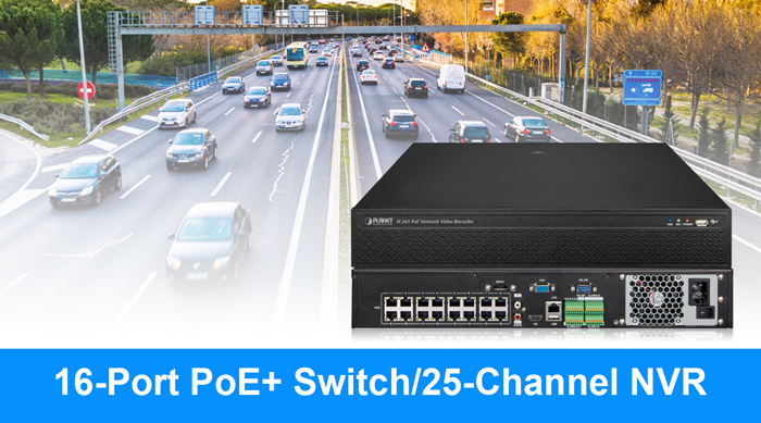 PLANET NVR-2516P es un nuevo grabador de video (NVR) en red PoE integrado Linux de 25 canales con 16 puertos PoE para campus, aeropuertos, transporte y más. Diseñado para aplicaciones de vigilancia IP con pantalla local HDMI; el NVR-2516P admite cámaras IP con hasta 4K y códec de video H265/H264/H265+/H264+ para monitoreo, grabación y reproducción en tiempo real de alta calidad. También es compatible con la resolución de video 4K en cualquier monitor HD.