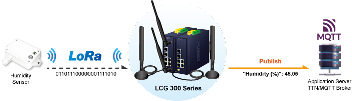 El LCG-300-NR LoRa inalámbrico permite que los sensores transmitan datos a distancias extremadamente largas con un bajo consumo de energía, y es totalmente compatible con el protocolo LoRaWAN y admite la conexión con hasta 300 nodos finales. También proporciona bandas de frecuencia LoRaWAN estándar preconfiguradas para diferentes países. PLANET LCG-300-NR es la mejor opción para ayudarlo a promover la implementación de la red AIoT.
