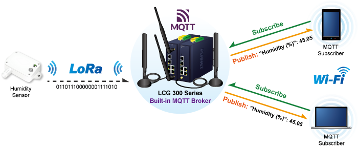 Además, el agente MQTT integrado en la serie LCG-300 facilita el análisis y la recopilación de datos, lo que permite a los usuarios obtener datos de manera rápida y conveniente. Esto es posible tanto a través del agente MQTT interno como de un agente MQTT externo. Esta funcionalidad ayuda a reducir los costos asociados con la construcción de servidores de red y minimiza la complejidad de la arquitectura de red.