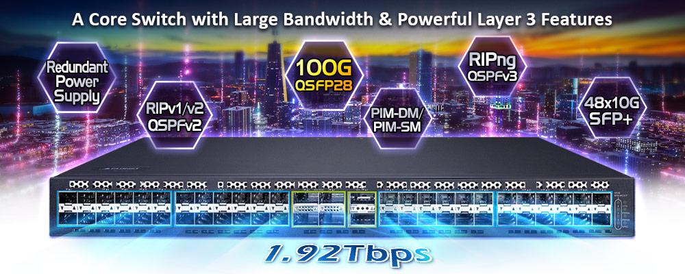 El administrador puede elegir de manera flexible los transceptores adecuados según la distancia de transmisión o la velocidad de transmisión requerida para extender la red 1G/10G/40G/100G de manera eficiente. Además, con una capacidad de conmutación de 1,92 Tbps, el XGS-6350-48X2Q4C puede manejar cantidades extremadamente grandes de datos en una topología segura que se vincula a servidores de red troncal o de alta capacidad donde se utilizan aplicaciones de audio, transmisión de video y multidifusión.