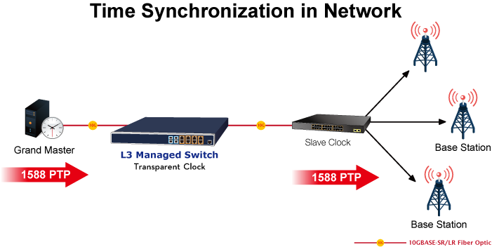 El XGS-6320-8UP4X es ideal para implementar aplicaciones de protocolo de tiempo de precisión (PTP) como reloj transparente. Puede desempeñar un papel importante en una red IEEE 1588 y Ethernet síncrona al admitir la entrega de servicios MEF y la sincronización a través de soluciones de paquetes