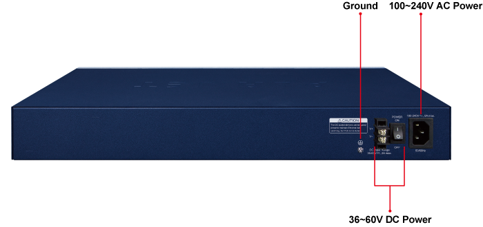 El GS-6320-24UP2T2XV está especialmente equipado con una unidad de fuente de alimentación de 100~240 V CA y una unidad de fuente de alimentación de 36~60 V CC para proporcionar una fuente de alimentación redundante mejorada, confiable y escalable. El sistema de alimentación continua está diseñado específicamente para satisfacer las demandas de las instalaciones de alta tecnología que requieren la máxima integridad de energía. Con la fuente de alimentación de 36~60 V CC, el GS-6320-24UP2T2XV puede actuar como un dispositivo de nivel de telecomunicaciones que puede ubicarse en la sala electrónica.