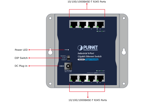 El PLANET WGS-810 es un innovador conmutador Ethernet Gigabit industrial de 8 puertos para montaje en pared, diseñado para instalarse en un gabinete de pared o simplemente para montarse en cualquier lugar conveniente de la pared. Viene en una carcasa de metal IP30 compacta pero resistente. Con una velocidad de red ultrarrápida y una temperatura de funcionamiento que varía de -20 a 60 grados C, el WGS-810 es una solución ideal para satisfacer la demanda de las siguientes aplicaciones de red.