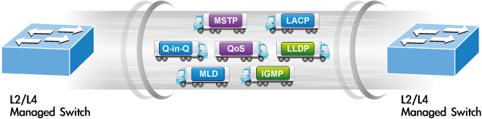 El FGSW-1816HPS se puede programar para funciones avanzadas de gestión de conmutadores, como el protocolo de árbol de expansión múltiple (MSTP), filtrado BPDU, protección BPDU, agregación dinámica de enlaces de puertos, vigilancia IGMP/MLD, agente de retransmisión DHCP, detección de bucles y GVRP, VLAN de voz y el protocolo de descubrimiento de capa de enlace (LLDP). El protocolo de capa 2 incluido ayuda a descubrir información básica sobre los dispositivos vecinos en el dominio de transmisión local. Otras funciones incluidas son la VLAN basada en puerto/802.1Q y la VLAN Q-in-Q, calidad de servicio de capa 2/4, duplicación de puertos, control de tormentas de transmisión y control de ancho de banda.