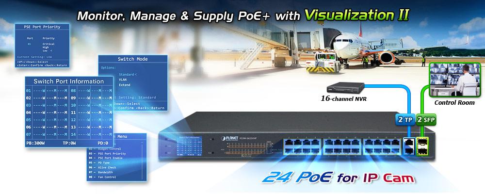 PLANET FGSW-2622VHP es una solución ideal de alimentación por Ethernet con solo enchufar y ver que ofrece una instalación rápida, monitoreo del estado de trabajo de PoE en tiempo real y resolución de problemas inmediata a través de su exclusiva pantalla LCD para mejorar la eficiencia y la calidad del trabajo sin necesidad de PC ni software.