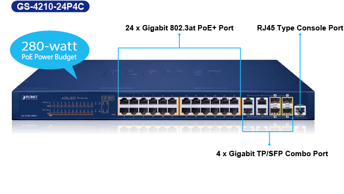 • PLANET GS-4210-24P4C