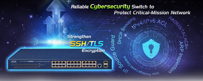 El GS-4210-24P2S admite los protocolos SSHv2 y TLS para brindar una protección sólida contra amenazas avanzadas. Incluye una variedad de funciones de ciberseguridad como DHCP Snooping, IP Source Guard, protección de inspección ARP dinámica, control de acceso a la red basado en puertos 802.1x, administración de cuentas de usuario RADIUS y TACACS+, autenticación SNMPv3, etc. para complementarlo como una solución de seguridad integral.